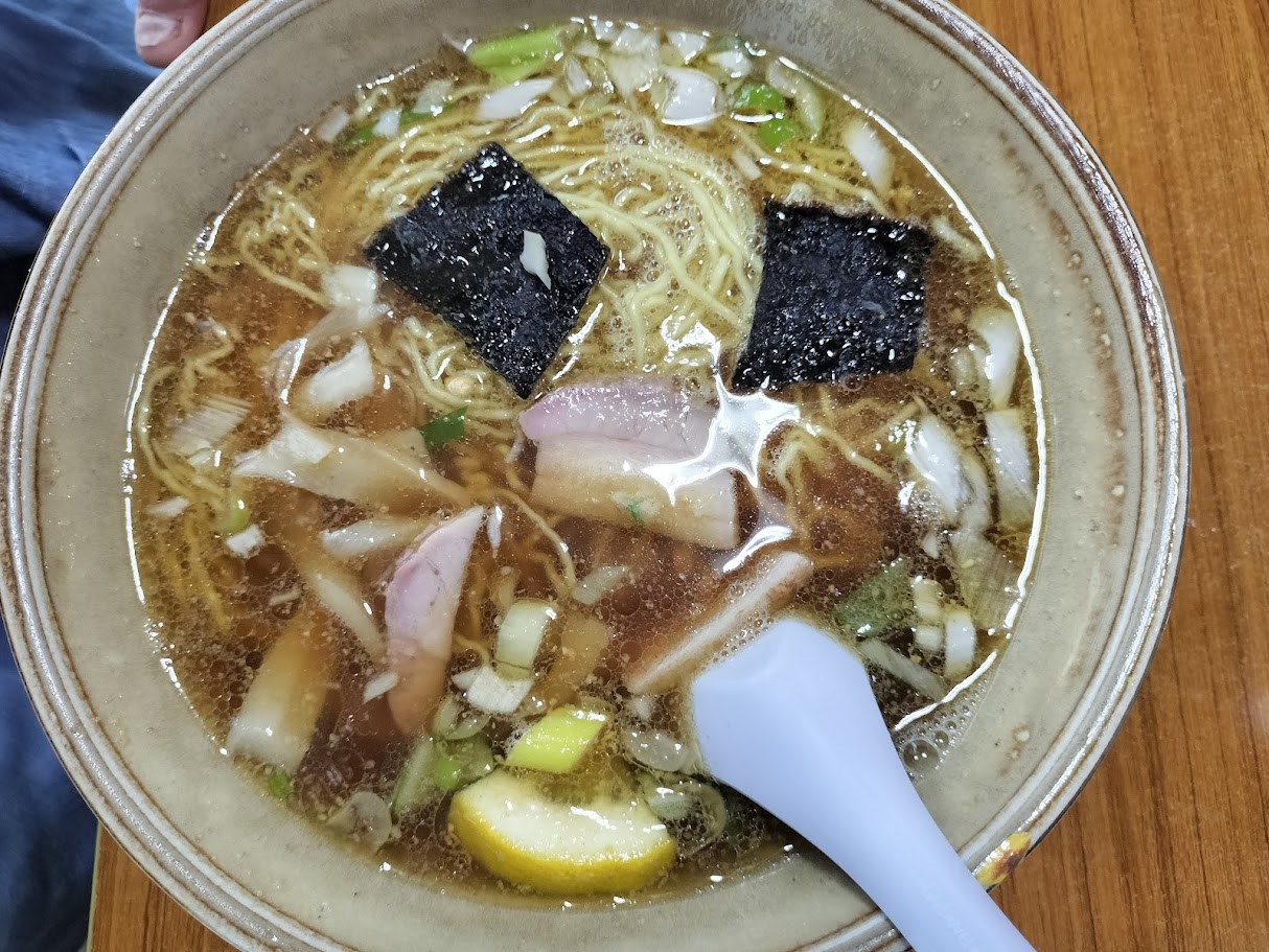 翌日は強めの雨。能代市「ラーメン十八番」さんへ。平日ですが混んでいます。