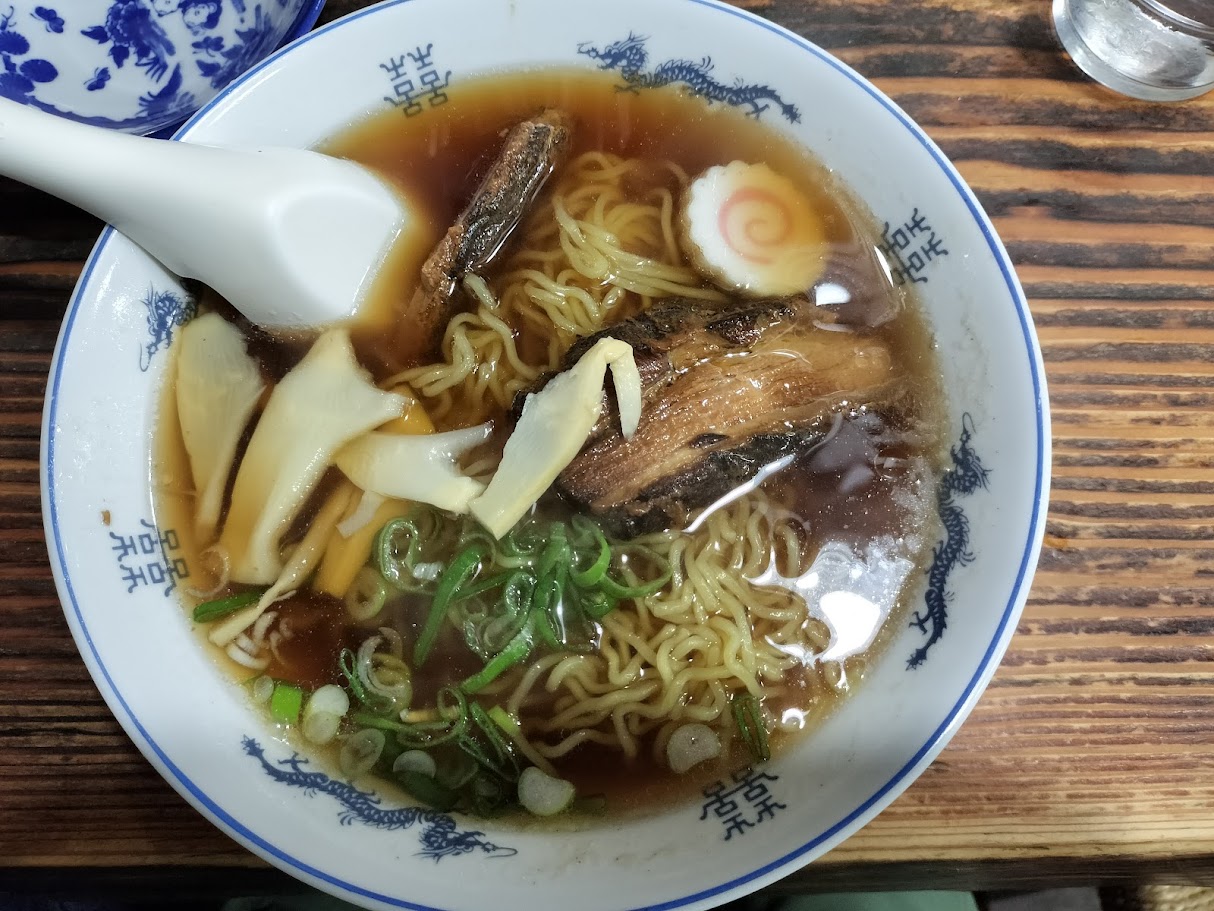 シメのラーメン。濃い目のしょうゆラーメンが美味しかったです。