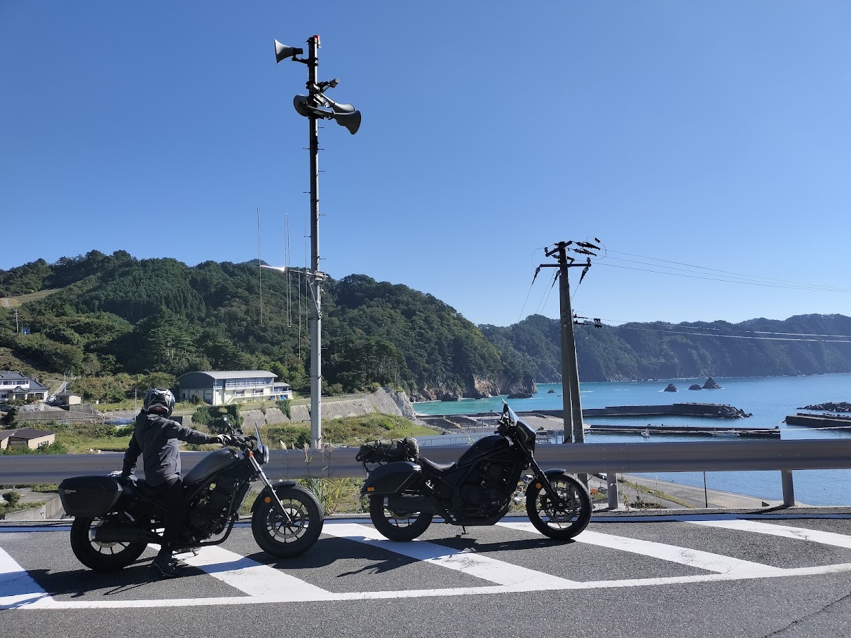 三陸の綺麗な海を眺めながら走ります。三陸道が出来たせいか、国道45号線は交通量が少なく走りやすい。ライダー天国です。