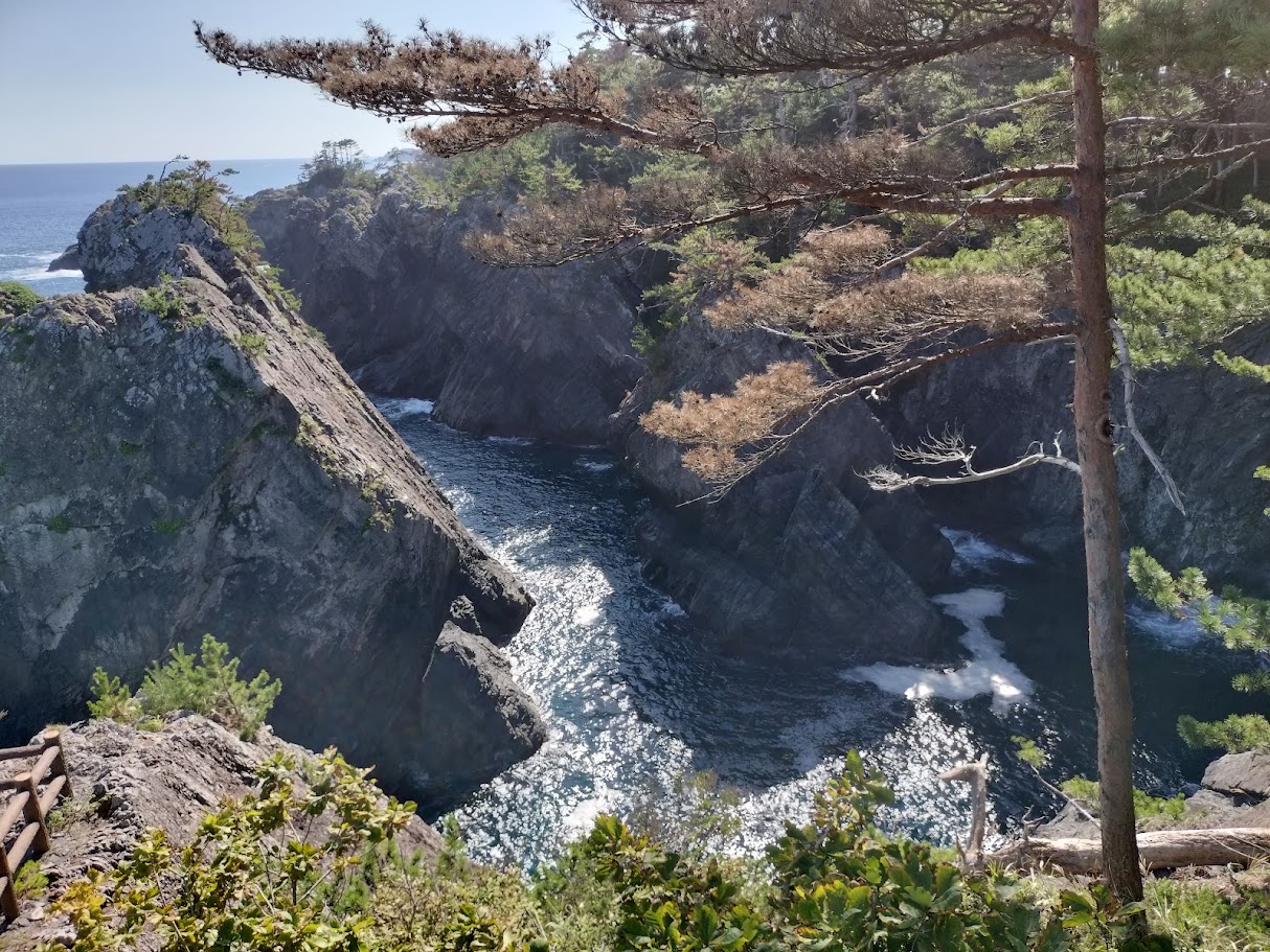 碁石海岸へ。「雷岩·乱曝谷展望台」から海を眺めます。大変な迫力でした。