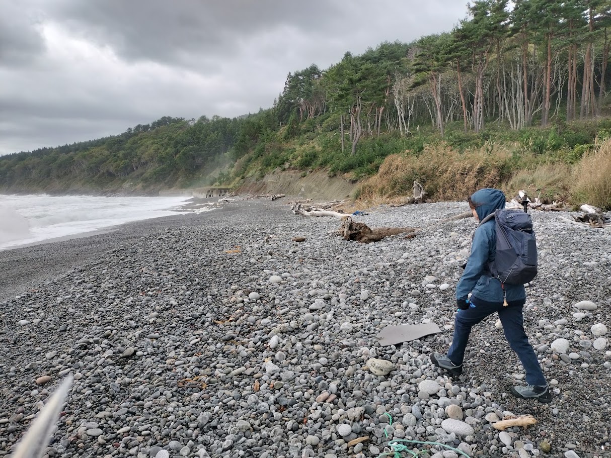 朝6時、三陸鉄道・普代駅に到着。ここで着替え、朝食など準備を済ませ出発。
