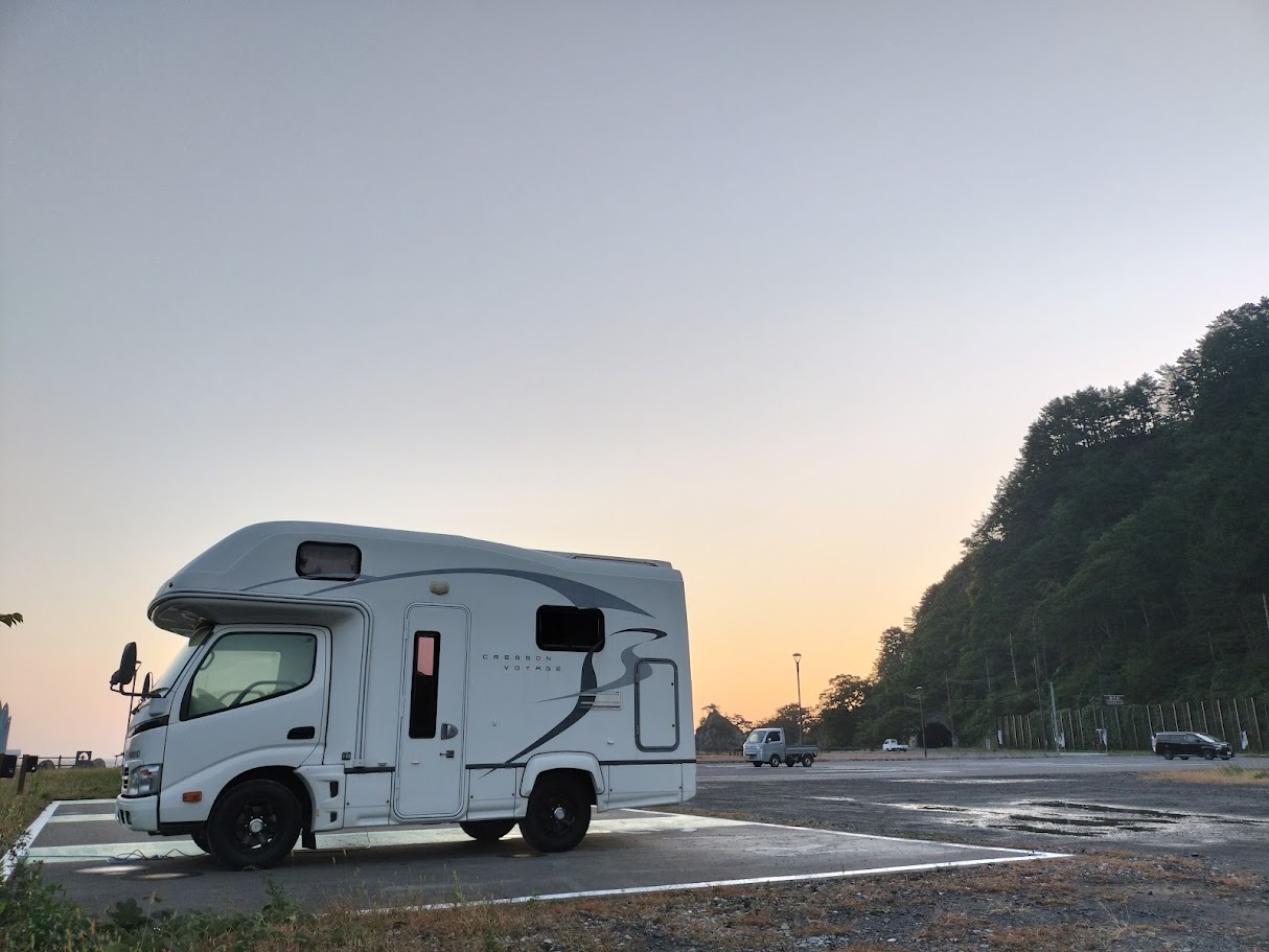 「普代浜園地キラウミRVパーク」でゆっくり過ごします。トイレ、水場は凄く綺麗です。