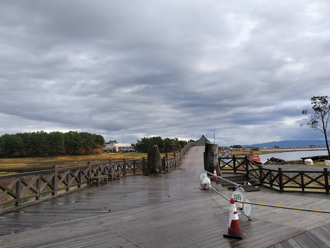 翌朝は日本一長い三連太鼓橋「鶴の舞橋」を見に行きます。工事中で残念でしたが周辺の公園をゆっくり散策。晩秋の津軽の空気感がいい。静かで心地いい。