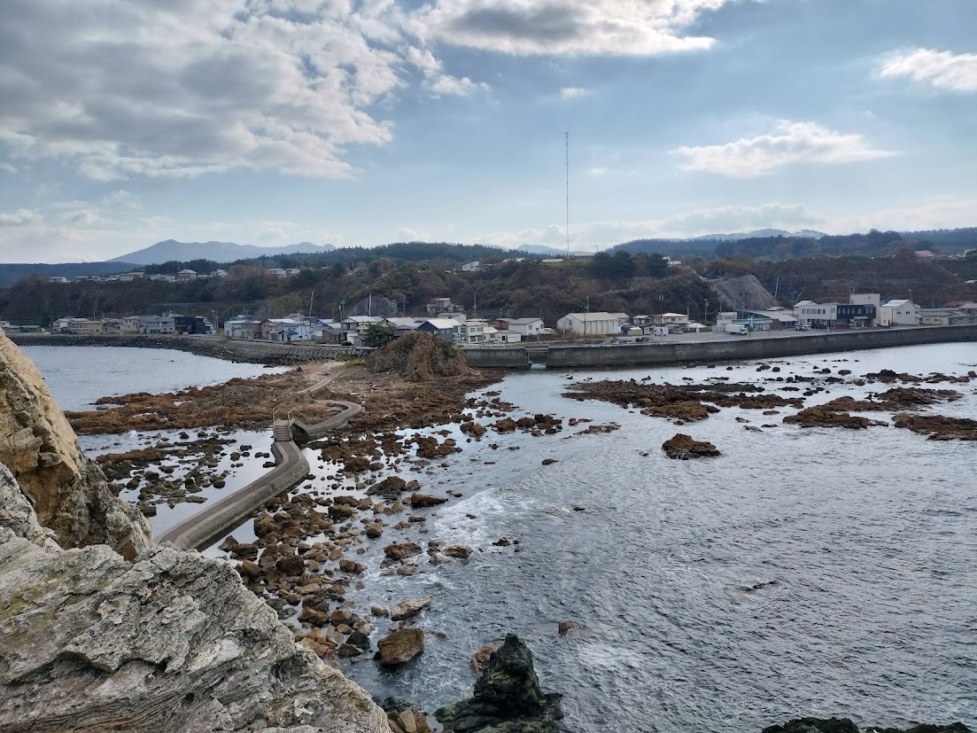 深浦町・大岩を散策。遊歩道を歩き洞穴内の階段を登り岩上に出れば、日本海が360度一望できるパノラミックビュー。大変に迫力ある景色です。
