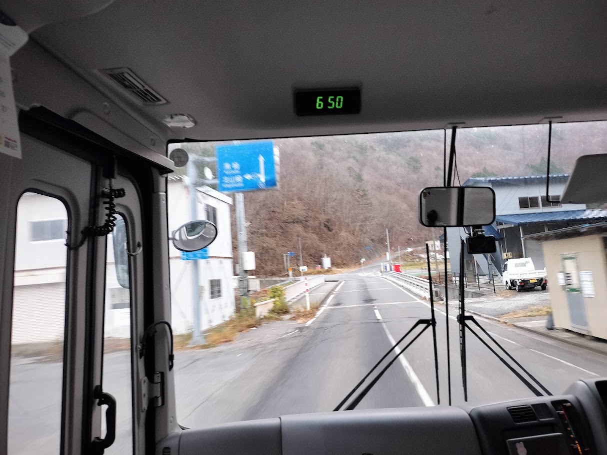 普代浜園地キラウミから普代村営バスに乗車。バス停で待機し、手を上げると止まってくれます。乗車無料です。