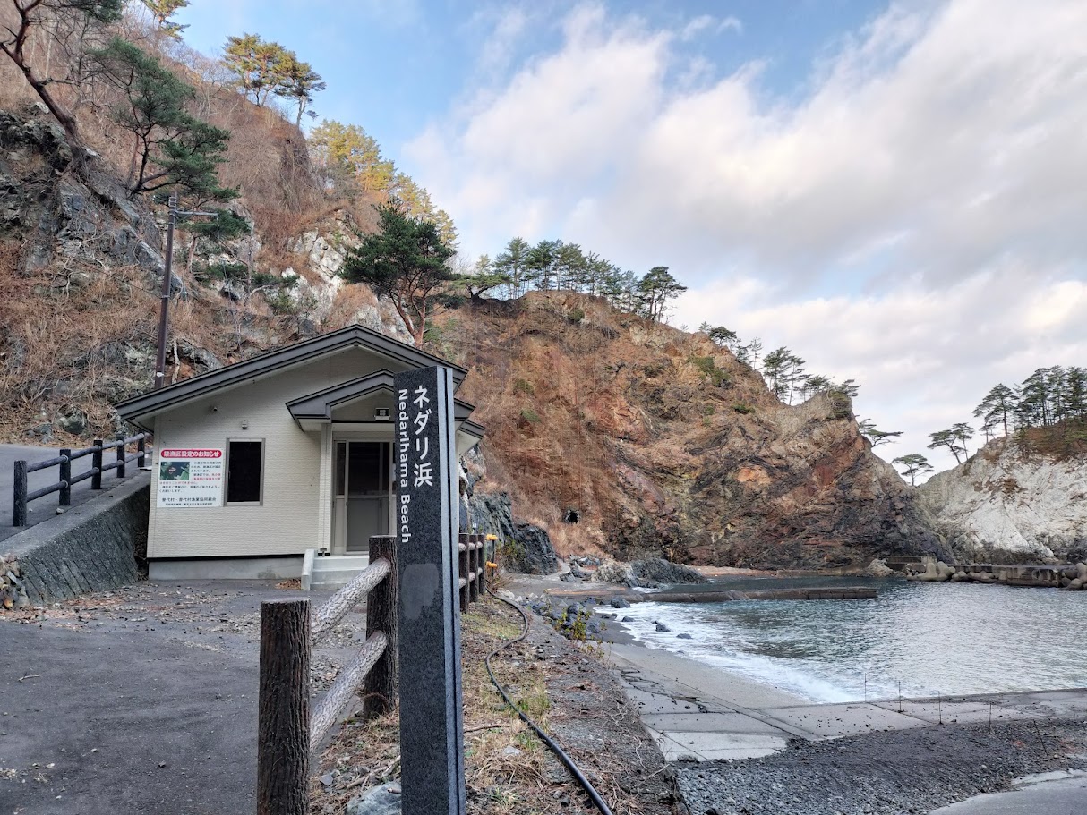 かなりの高低差の階段を下り「ネダリ浜」へ。