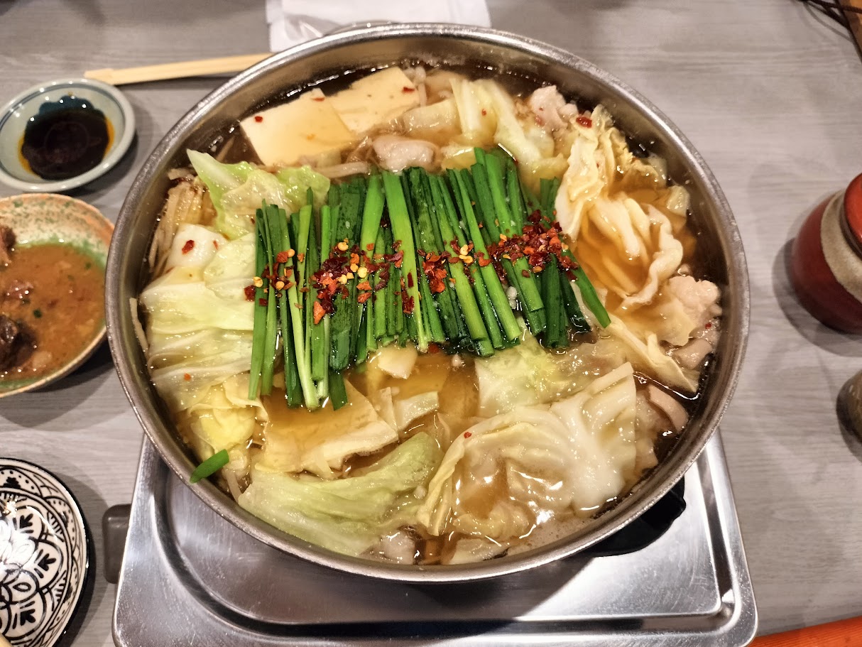 中洲川端で創業30余年「牛もつ鍋 川端」さん。もつ鍋二人前を注文。