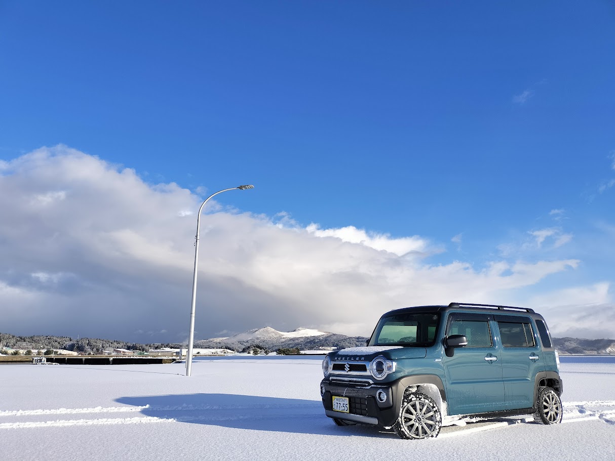 船川港でハスラーを撮影。寒風山が綺麗に見えました。
