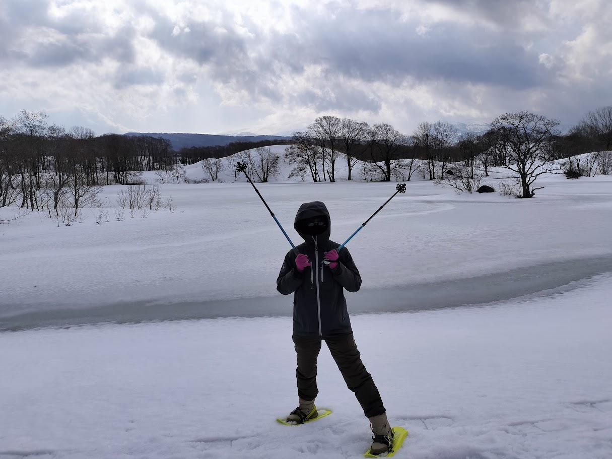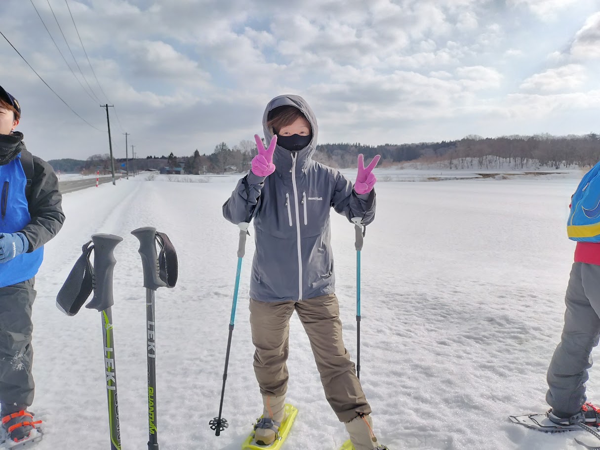 2/15(日)にかほ DE スノートレッキング 第2回 十八森池コースに参加してきました。今回は8:30~12:00まで、鳥海山に向かって平坦を歩く約2.5時間のコースでした。