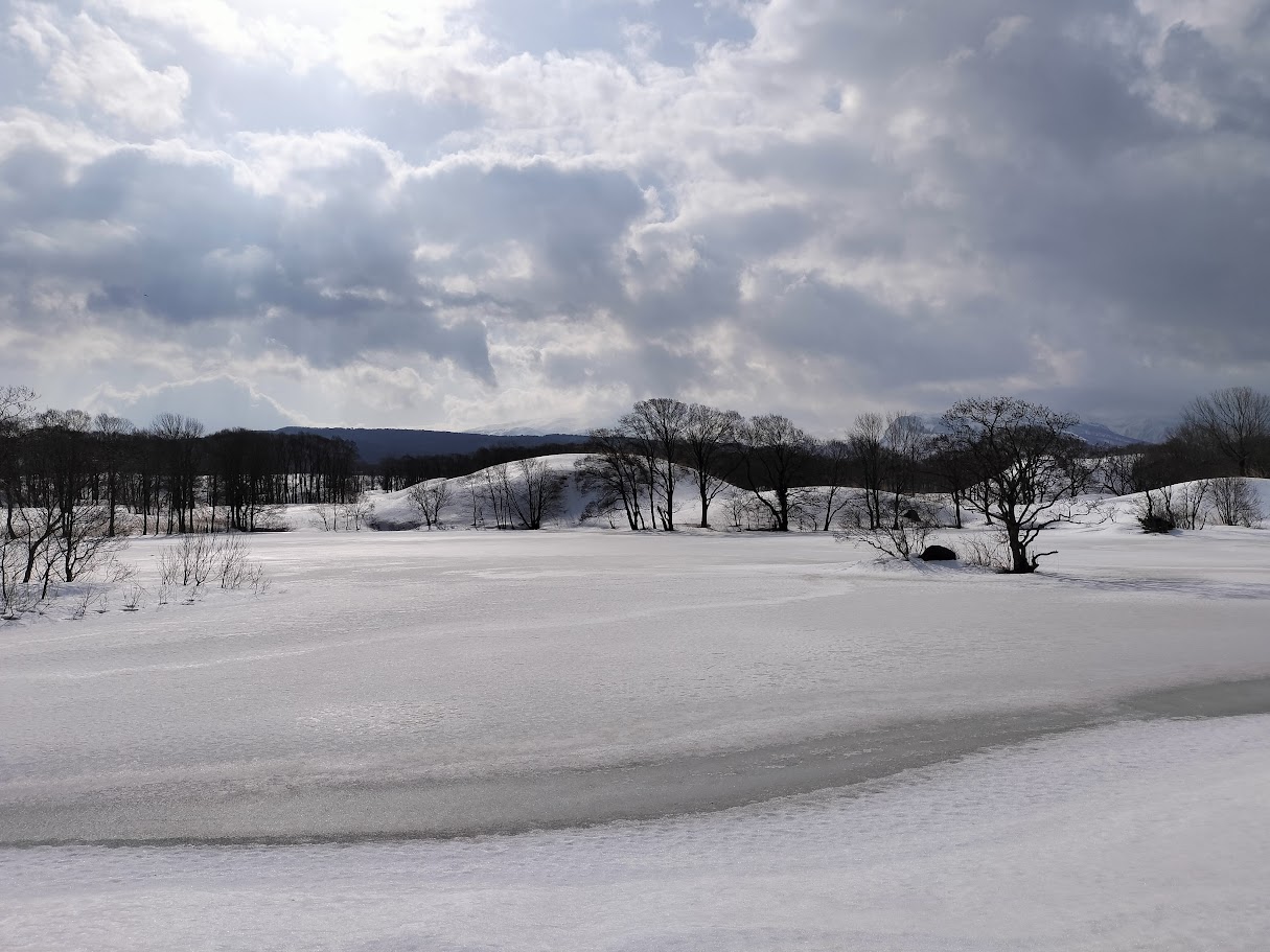 冬至湿原にある十八森池(とうやもり池)を目指して、雪原を歩きます。