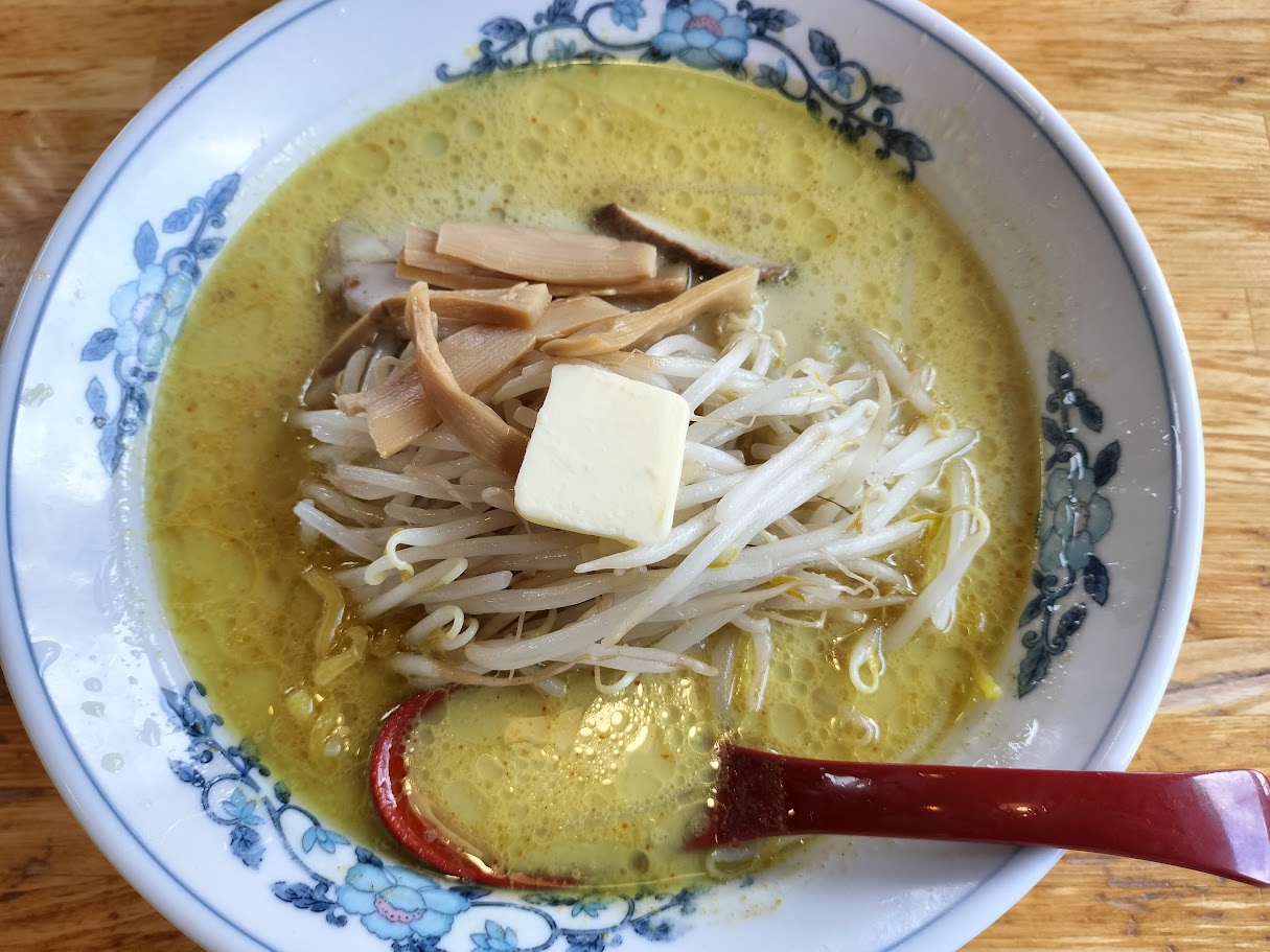 お昼は「札幌館」で味噌カレー牛乳ラーメン。スープが染みるように美味しいです。