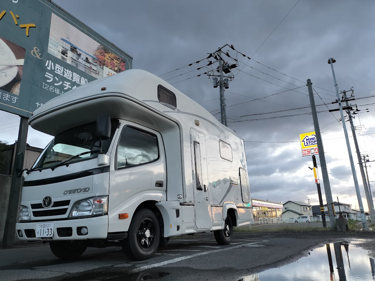 トヨタ カムロードはダイナ/トヨエース/日野デュトロの兄弟車。非常に安定感のある乗り心地で、高速走行でふらつくこともなく、カムロードのベース車両としての性能の良さを体感できます。トラックならではの見晴らしのよさ、広いフロントウインドウ、高い乗車位置なども実に気持ちがいい。2リッターガソリンエンジンなのでパワーはありませんが、困るのは峠道の登りだけ。一般道、高速道路で普通のペースで走る分には全く不足なし。乗り心地、ハンドリング、ブレーキ性能、いずれも良好。がっしりしたハコに守られてる感覚があり、安心感のあるドライブができます。