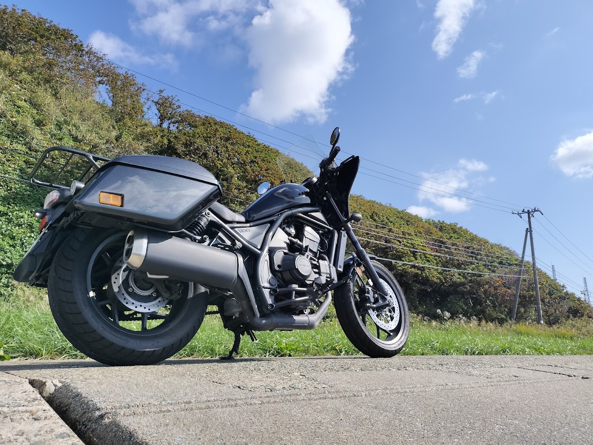 クルーザーモデルのRebel1100に大型のバットマンカウルと左右パニアケースを標準装備し、ツーリング性能を高めたバリエーションモデル。1,082cc水冷OHC・直列2気筒。2023年3月ホンダドリーム酒田にて新車購入。